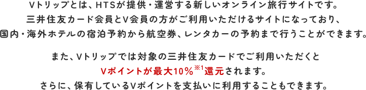 ※1・最大10%のうち9.5%は、三井住友カードの通常ポイント分とVトリップのご利用特典分を合算した還元率です。