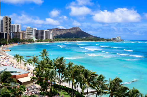 ハワイ旅行の定番ホノルル。ワイキキを中心にビーチも買い物も楽しめる。